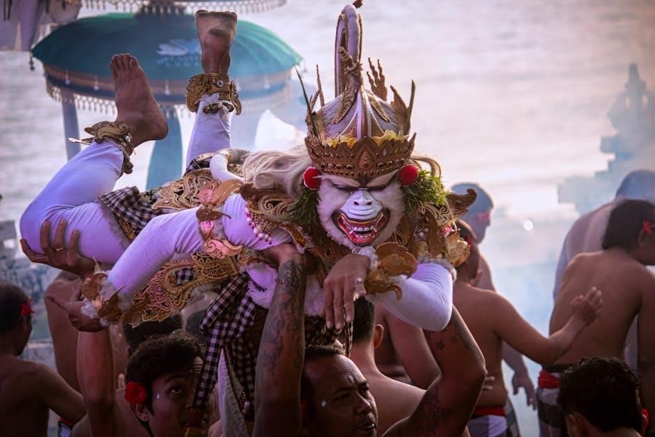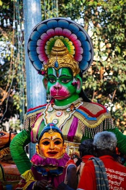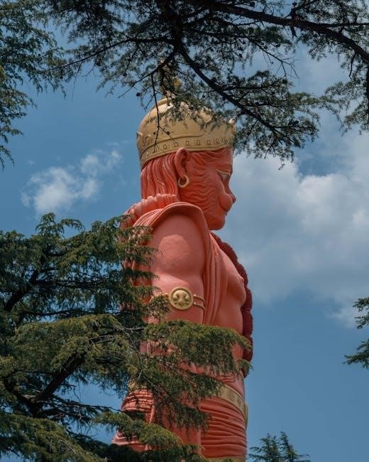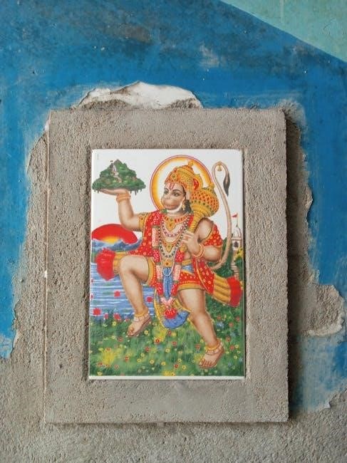 Key verses in the Gujarati Hanuman Chalisa highlight Lord Hanuman’s strength, devotion, and wisdom. Lines like “શ્ર રમજએ આપન પ્રસંશ કર” praise his unwavering loyalty to Lord Rama. These verses are interpreted as symbols of courage and faith, offering devotees spiritual guidance and emotional solace. The Gujarati PDF version makes these profound interpretations accessible for deeper understanding and reflection.