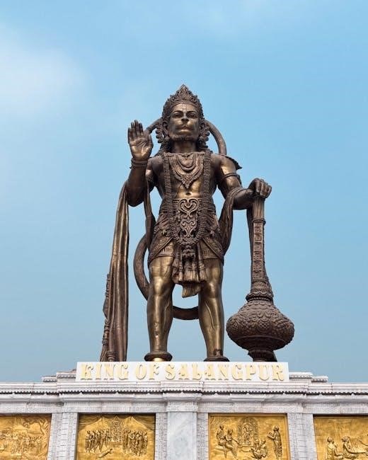 The Hanuman Chalisa Gujarati PDF serves as a divine guide, offering spiritual solace and devotion. Its accessibility in Gujarati enhances regional connectivity, fostering deeper faith and worship.